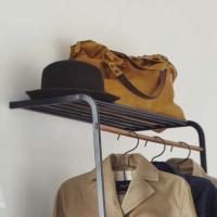 壁に立て掛けて使用するおしゃれなコートハンガーです。耐久性に優れたスチールフレームに、天然木のバーを組み合わせた、どんな空間にも馴染む、洗練された雰囲気が魅力的です。