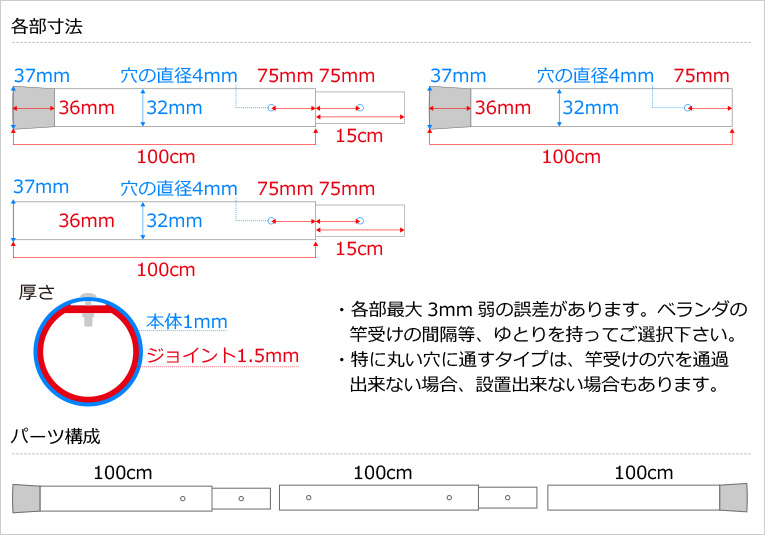 物干し竿の太さ:3.2直径cm