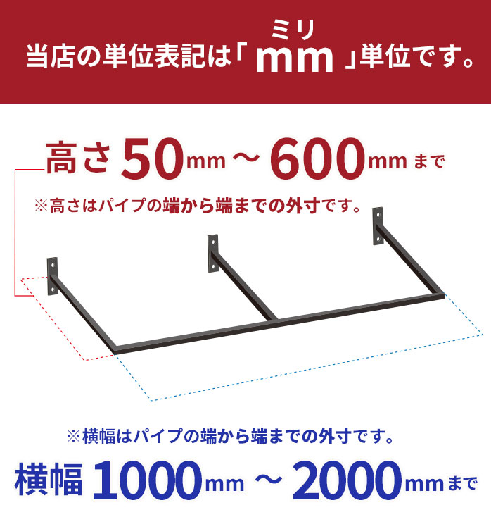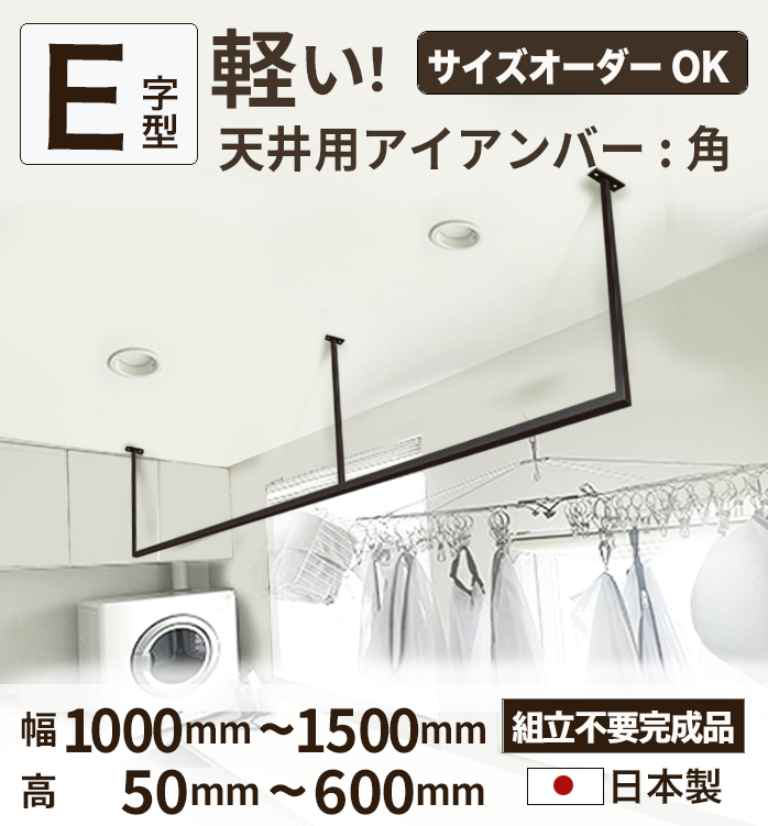 【 E字型2 】【 10mm刻みでサイズが選べる天井アイアンバー 】【 幅1000~1500mm 】オーダー 室内 物干し バー 黒 ホワイト ランドリー 洗濯干し 受注生産 日本製