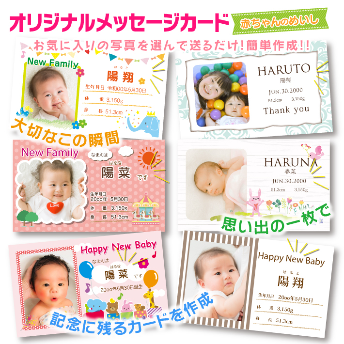 内祝い 出産 報告 カード [20枚] 誕生 命名紙 命名し 祝 赤ちゃん メッセージカード ポストカード 名刺 お返し 写真 子ども 男の子 女の子 命名書 名入れ 印刷