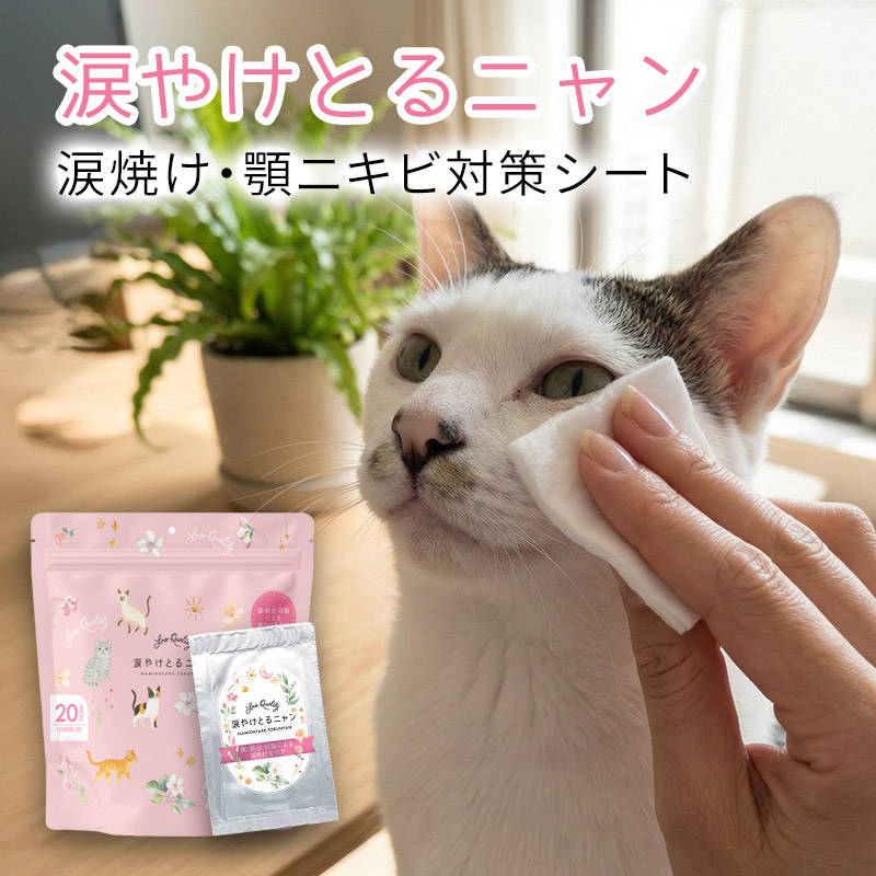 「鉄分」「菌」「目脂汚れ」のお悩みすべてに対応する涙やけケアシート。 医薬部外品の工場で作った安心の日本製です。エタノール・パラベンフリー。猫ちゃんのお悩みに多い「顎ニキビ」にも。毎日のお手入れがしやすい清潔な個包装がうれしいポイント。