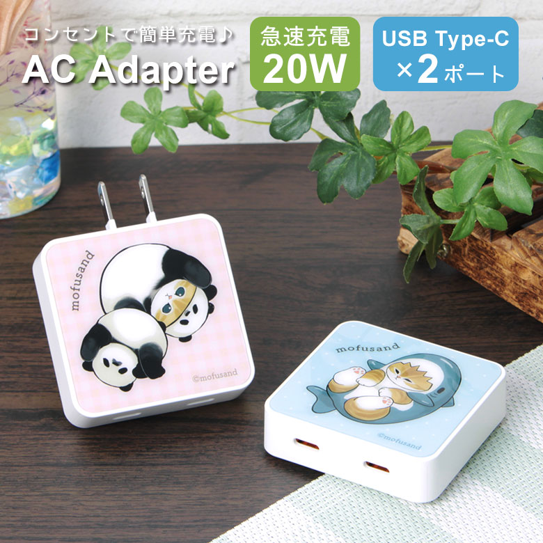 ACアダプター タイプC usb mofusand USB Type-C 充電器 2ポート コンセント 折り畳み式プラグ スマホ 充電 旅行 出張 iPad Android mofu-84
