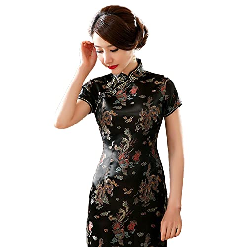 キッソス(KISSOS) コスプレ チャイナドレス チャイナ服 半袖 セクシー ドレス ロング (Lサイズ, ブラック)