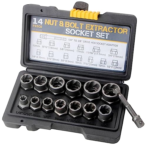 主な仕様 | 商品名:インパクト ボルト ナット リムーバー 取り外し ツール 専用ケース付き 14点セット【商品仕様】ケースサイズ(約):9.5cm×16.5cm×4cm高品質のクロムバナジウム鋼製を採用し、表面黒酸化物で高い強度と耐久性があり腐食等を防ぎ、長くご使用いただける商品です。コンパクトなケース付きで、収納や持ち運びも楽々。セット内容:3/4 "(19mm)、11/16"、17mm、5/8 "(16mm)、9/16"(14mm)、13mm、1/2 "、12mm、7/16"(11mm)、10mm、 3/8 "、5/16"(8mm)、1/4 "、六角アダプタ※取扱説明書等は付属しておりません。海外輸入品のため、小傷・汚れなどが付いている場合があります。商品の取付、取り扱い、その他のご質問にはお答え出来かねます。 |