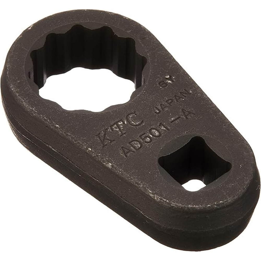 | O2センサ脱着 O2センサーに合わせた形状と、最適長さに設計。 2種類のドライブ部(差込角9.5sq.・二面幅19mm)を設定し、多くの駆動工具が使用可能。 ●KTC京都機械工具株式会社は日本を代表するハンドツールメーカーとして「軽くて強くて使いよい」を基本に高品質、独創的な技術力で市場をリード。 ●10,000アイテムにも及ぶ多彩な製品を開発し、アイテム数・生産量ともに国内No.1の実績と信頼を得ています。 O2センサソケット(AD501-22W)と組み合わせ、障害物を回避するためのアタッチメントです。 使用上の注意 ●O2センサを締めつけるときには、トルクレンチを使用してメーカーの定めるトルクで締めつけてください。 |