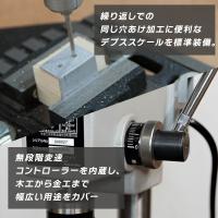 無段階変速コントローラーを内蔵し、木工から金工まで幅広い用途をカバーできる卓上で小型のボール盤です。