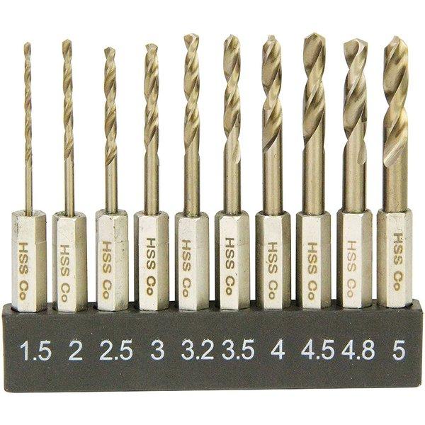 E-Value 六角軸 ステンレス用ドリルセット ショート ESSD-10HEX コバルトハイス鋼 耐熱性 穴あけ シンニング加工 6.35mm六角軸 インパクトドライバー 耐摩耗性