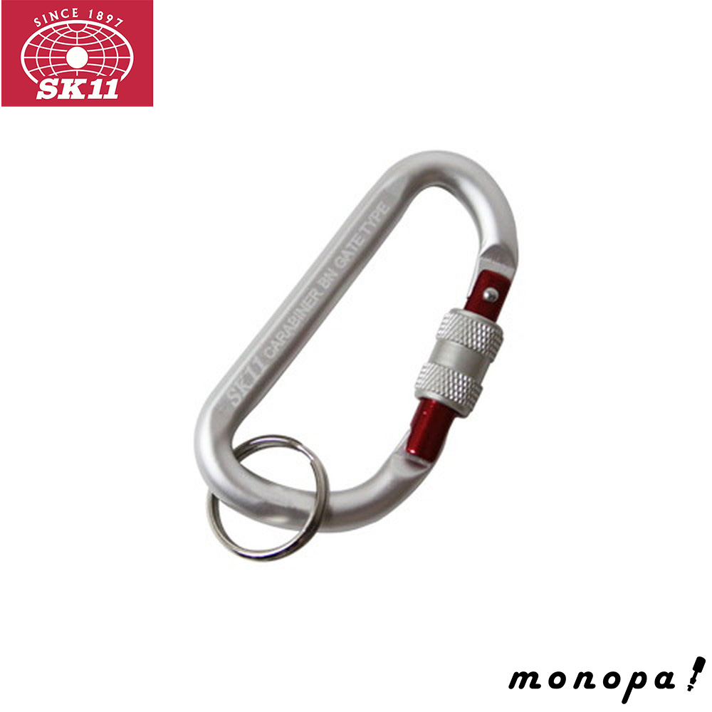 SK11 ロックカラビナ BN SAC-660BN シルバー アルミ製 軽量 つりさげ 脱落防止 ネジロック機構