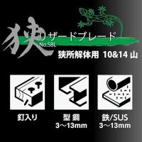 ■解体作業を重視した、先端極細形状 曲がりにくい厚さ1.27mmのスリム厚刃なので、狭い箇所での切断、開口作業に向いています。 ■切断能力(mm) ・10&14山…鉄:3~13 非鉄金属:3~13 ステンレス:3~13 鉄・ステンレス管:〇 塩ビ管:〇 木材:〇 構造鋼:〇 ■サイディングや釘入り木材などの複合材にも最適 コバルト含有で高耐久なので、サイディングや釘入り木材、ステンレスなどもスイスイ切断できます。 ■角R形状 差し込み時に接触するカド部を曲線にすることで、ガイドの役目を果たし、スムーズにブレードが差し込めます。 ●刃先:ウェーブセット 歯が波状(ウェーブ)に配置された刃で、バリが少なく静かで効率的な切断ができます。切断面も滑らかに仕上がります。 ■ 折れにくい高硬度刃先 刃先の硬度は900HV(実測値)と高硬度。解体現場の様々なワークでも折れにくく、高い靭性を誇ります。