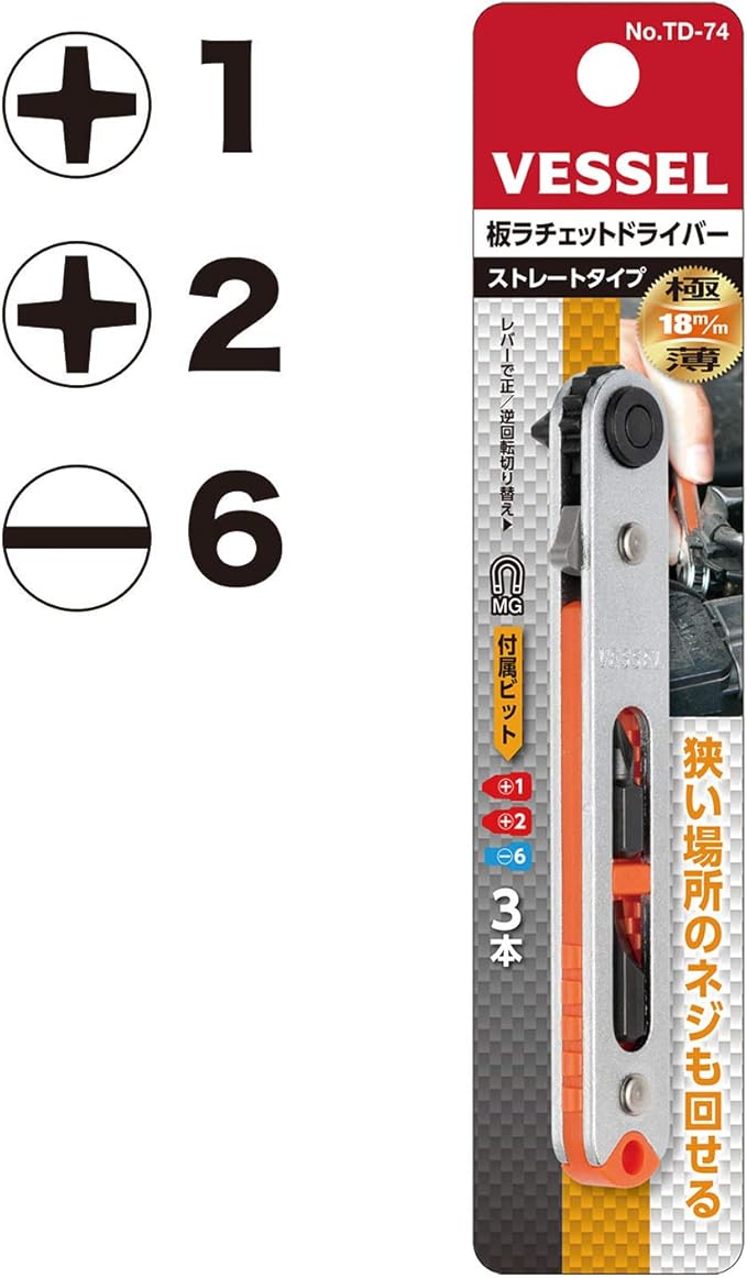 ベッセル VESSEL TD-74 極薄 板ラチェットドライバー ストレートタイプ プラス/マイナスビット計3本付