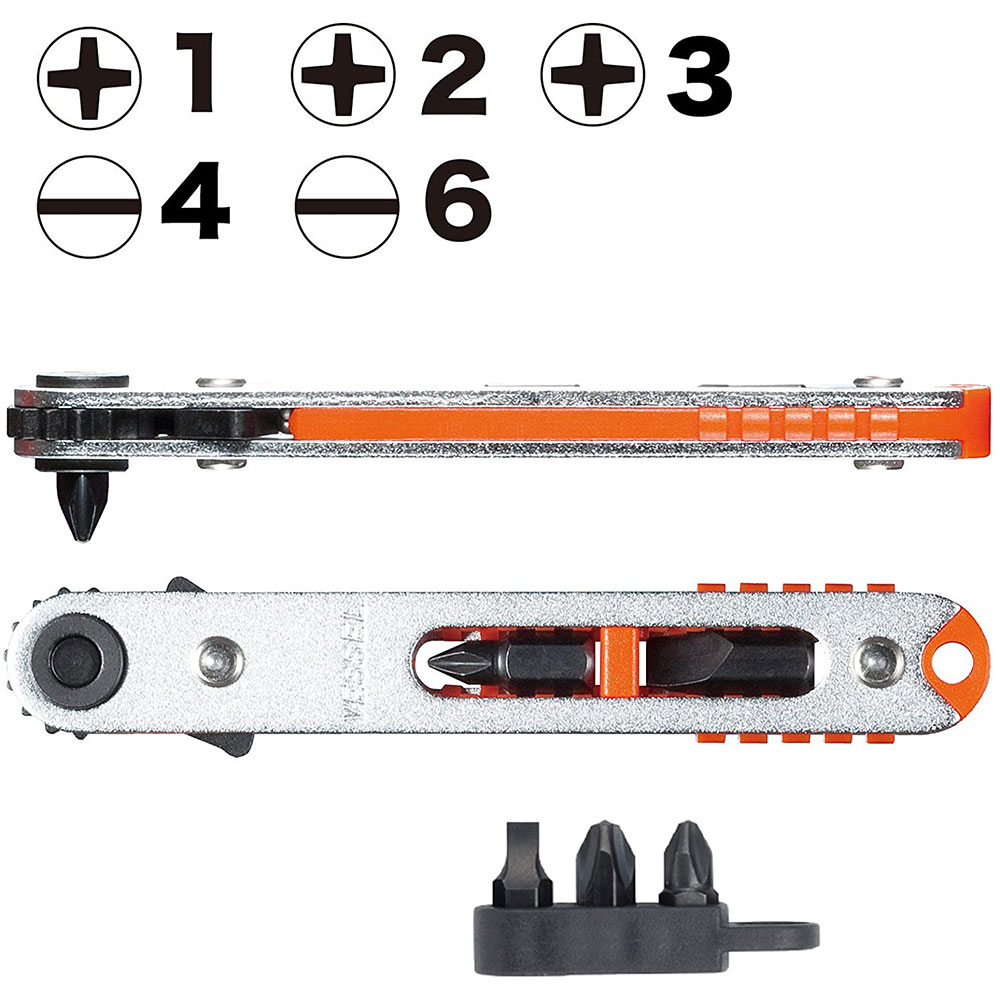 ベッセル VESSEL TD-75 極薄 板ラチェットドライバー ストレートタイプ プラス/マイナスビット計6本付