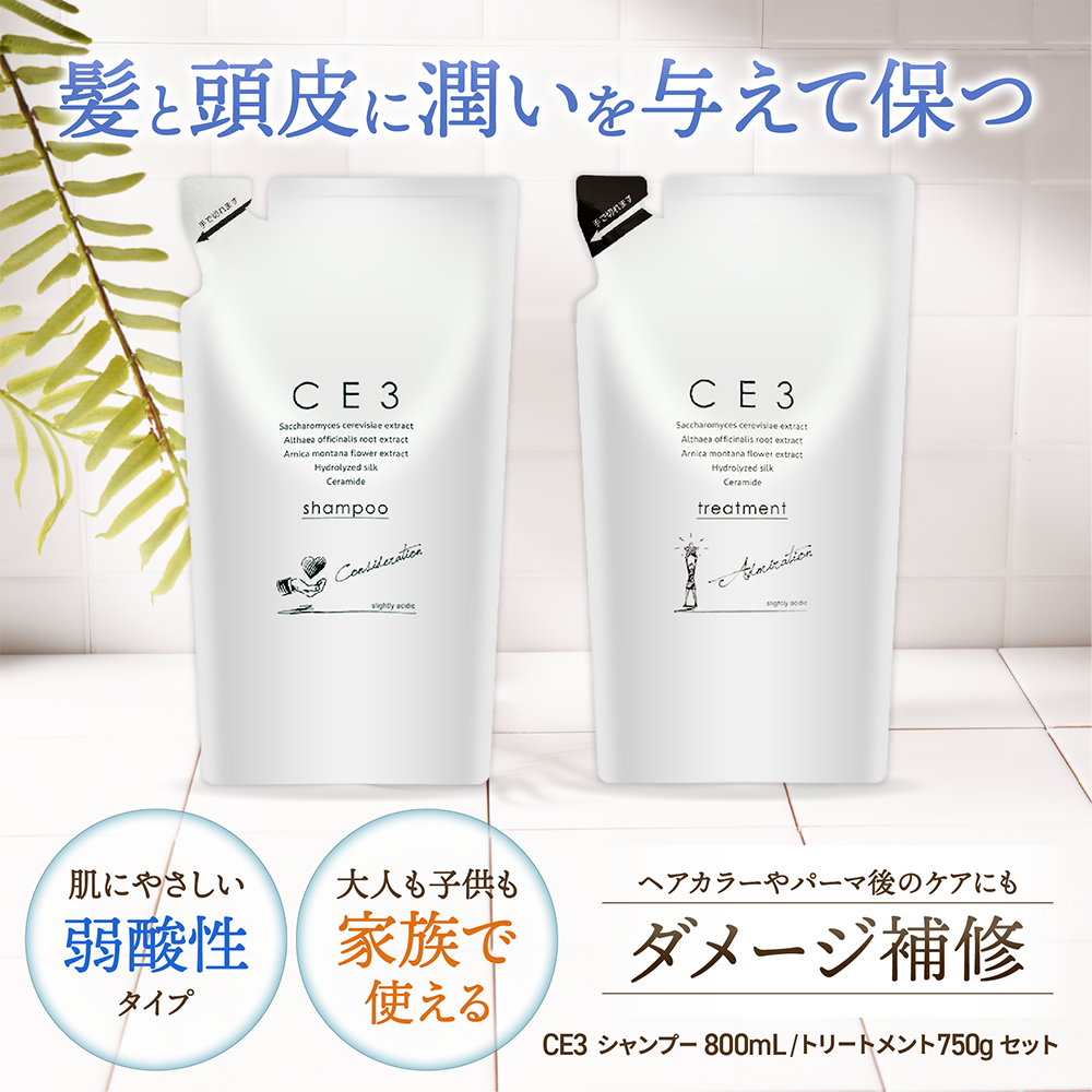 CE3 シャンプー & トリートメント セット 詰め替え 800ml 750g サロン専売 ノンシリコン リフィル レフィル ダメージ補修 弱酸性