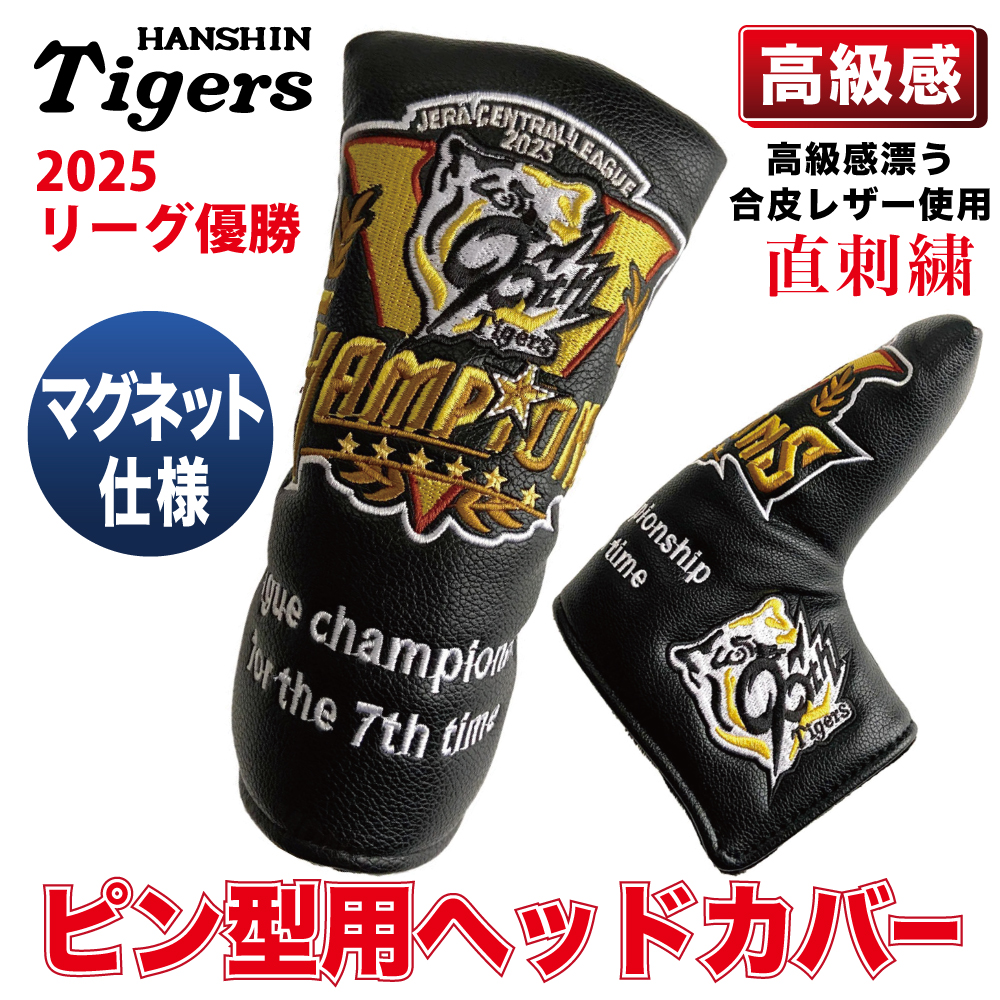 阪神タイガースグッズ 球団承認 2025 リーグ優勝記念 ゴルフ ピン型パター ヘッドカバー ★リーグ優勝PIN☆高級感漂う合皮レザー使用 直刺繍 マグネット仕様