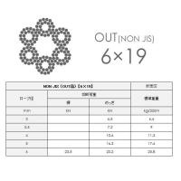 ワイヤーロープ構成:G/0(メッキ)6×19