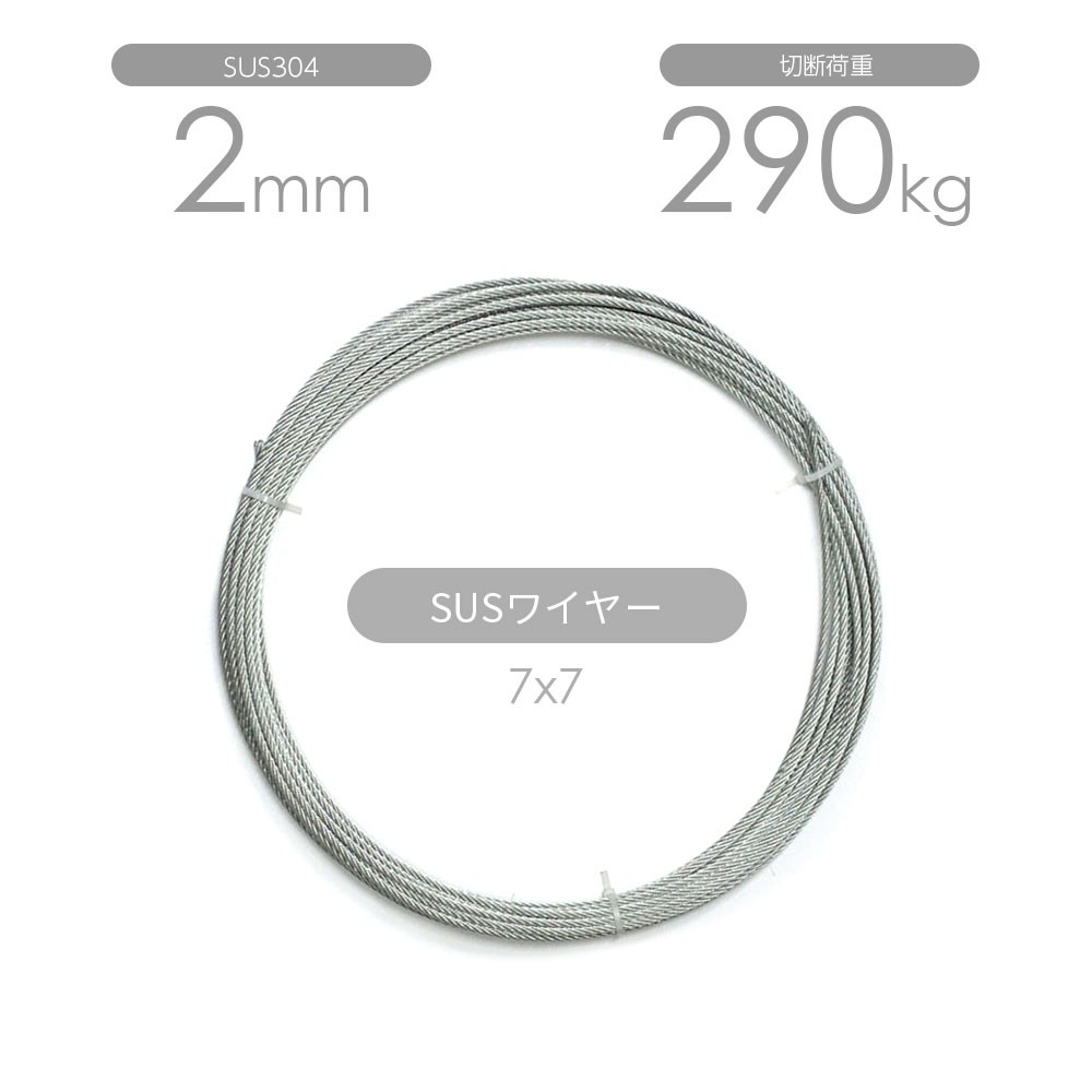 ステンレスワイヤー 7x7 2mm カット販売 SUS304