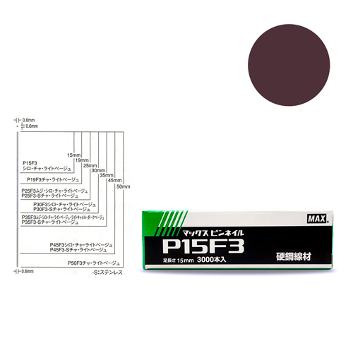 MAX P15F3 チャ ピンネイル NT92060(線形0.6mmx足長さ15mmx3,000本入)