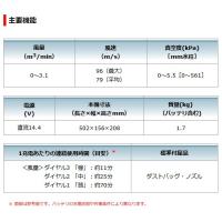 最大風量 3.1m3/分、最大風速 96m/分