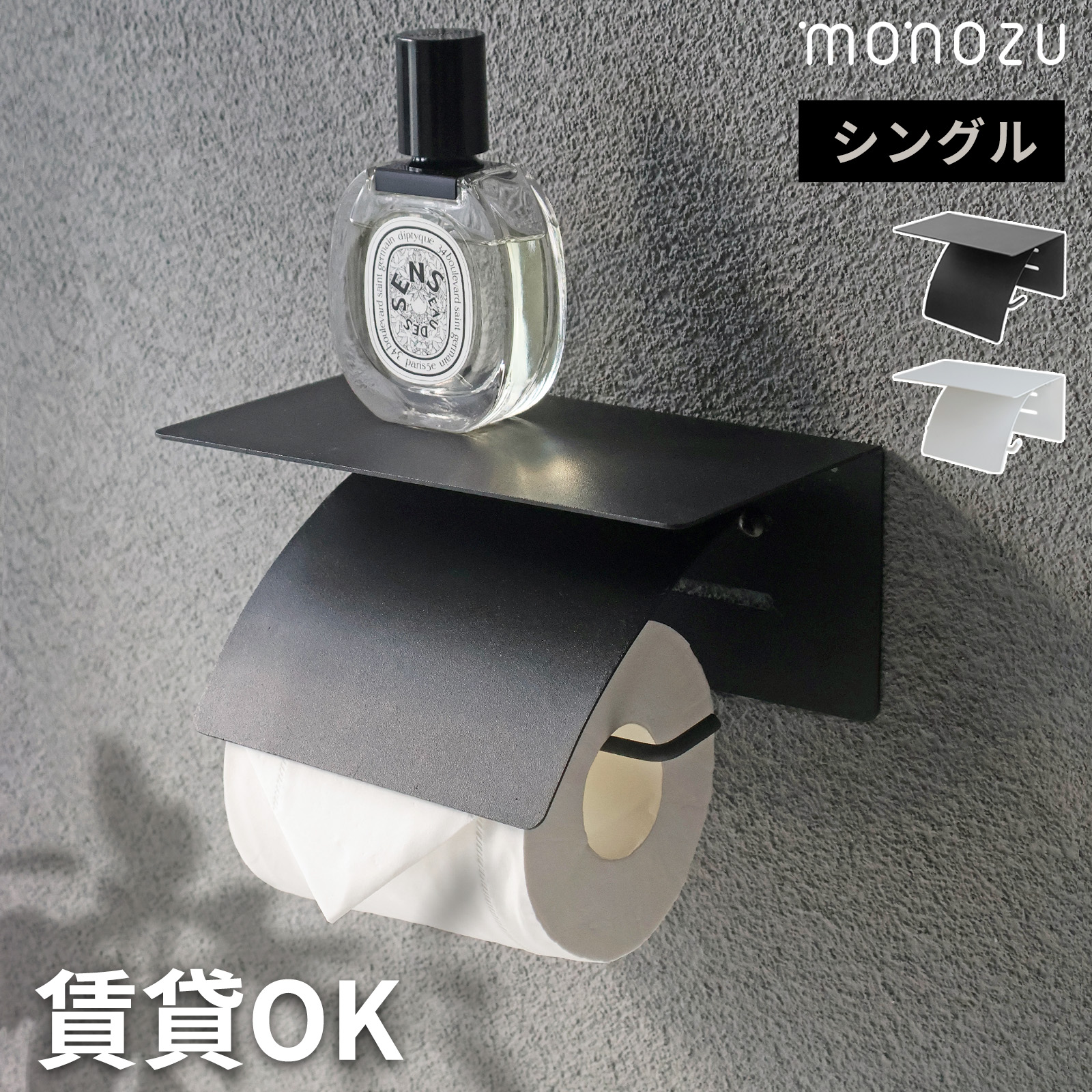 片手で切れるトイレットペーパーホルダー シングル スチール製 賃貸OK 太巻き/コストコ対応 サビ防止塗装 1連 紙巻き器 モダン シンプル おしゃれ 棚 ブラック