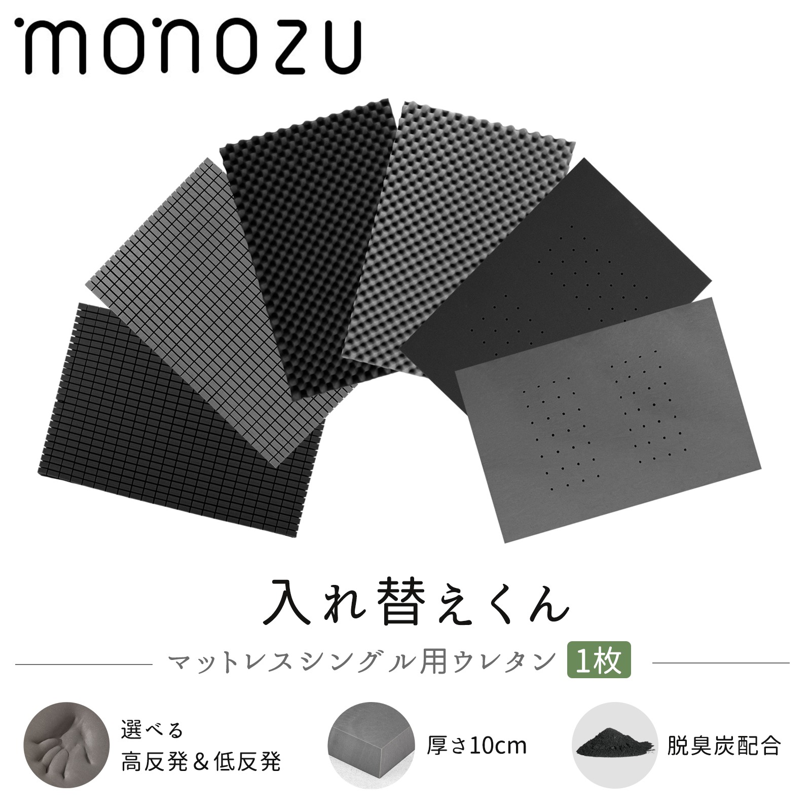 マットレス入れ替え用 ウレタン 中身【高反発/スクエア】竹炭消臭 ウレタン単品 車中泊マット隙間クッション 交換 1枚だけ スポンジ クッション材 防災グッズ