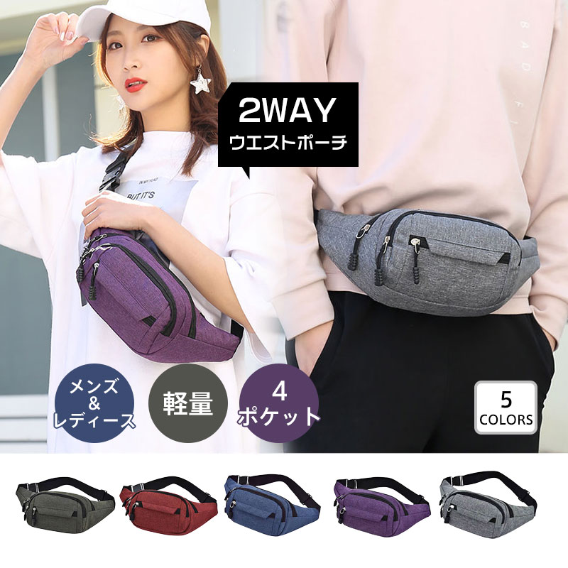 ウエストポーチ メンズ レディース 男女兼用 ボディバッグ 肩掛け 斜め掛け 大容量 ウエストバッグ 2WAY 防水 薄型 お出かけ アウトドア