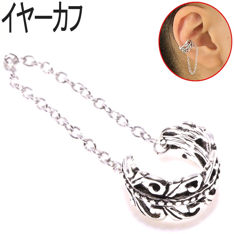 トライバルチェーン シルバーカラー デザイン イヤーカフ【穴あけ不要ワンタッチ装着】 AEC-39