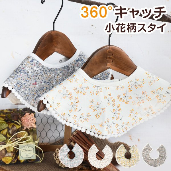 360度ベビースタイ 小花柄 北欧風 ピコレース おしゃれ 出産祝い 新生児 赤ちゃん用品 男の子 女の子 ビブ 丸型 よだれかけ BIB1059-