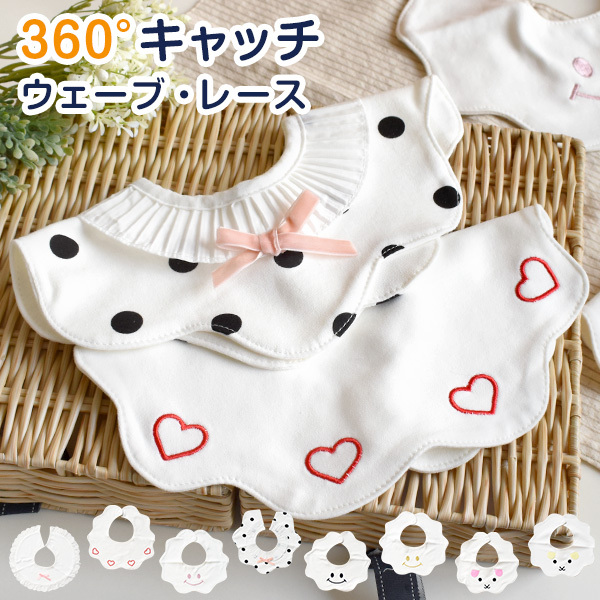 360度の円形スタイなのでくるくる回っても安心。どの方向からでもよだれをキャッチ。ママやパパにも嬉しい機能です。