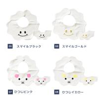 キュートなリボンやハート、雲形のビブに3カラーのニコちゃんマーク、愛らしい表情のひつじがあしらわれた全8種類!