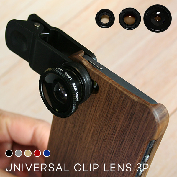 マクロ(接写)/魚眼(フィッシュアイ)/ワイド(広角)撮影のできる3種類のカメラレンズセットです。