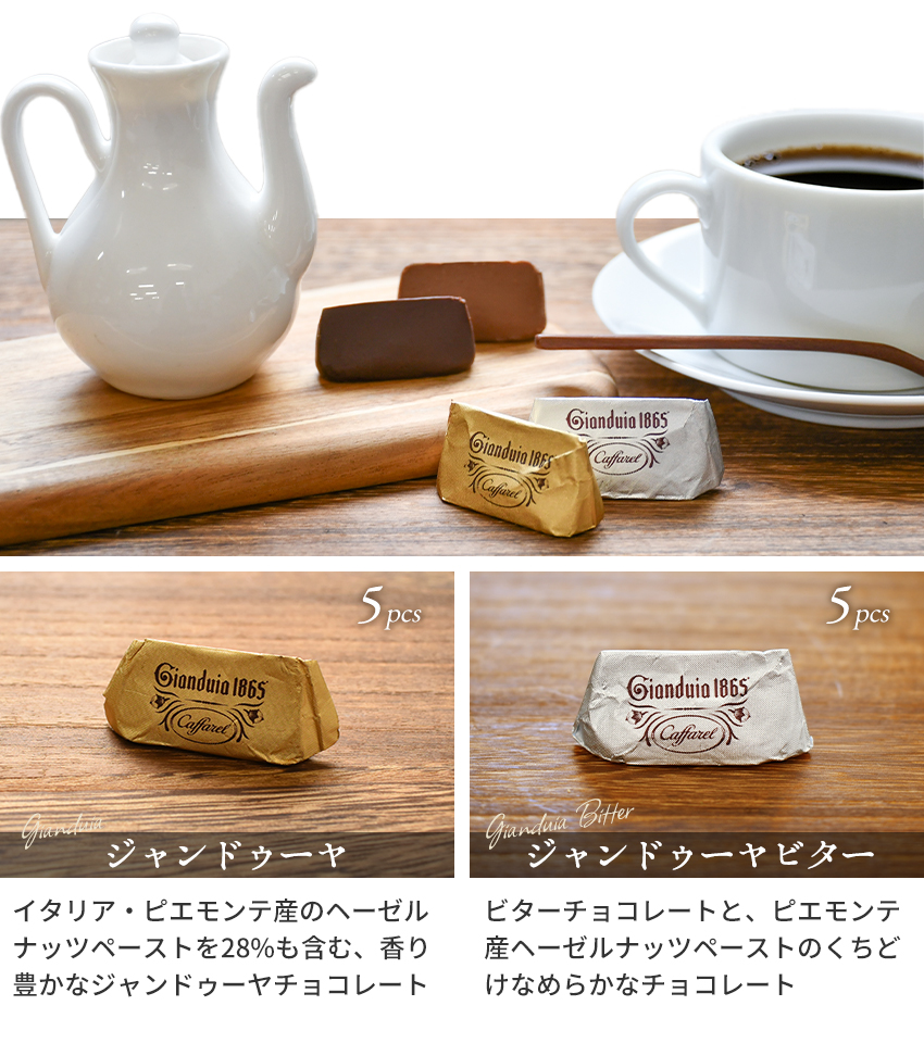 こちらは代表作であるジャンドゥーヤと、ジャンドゥーヤビターのみを詰め合わせた見た目も上品なセット。