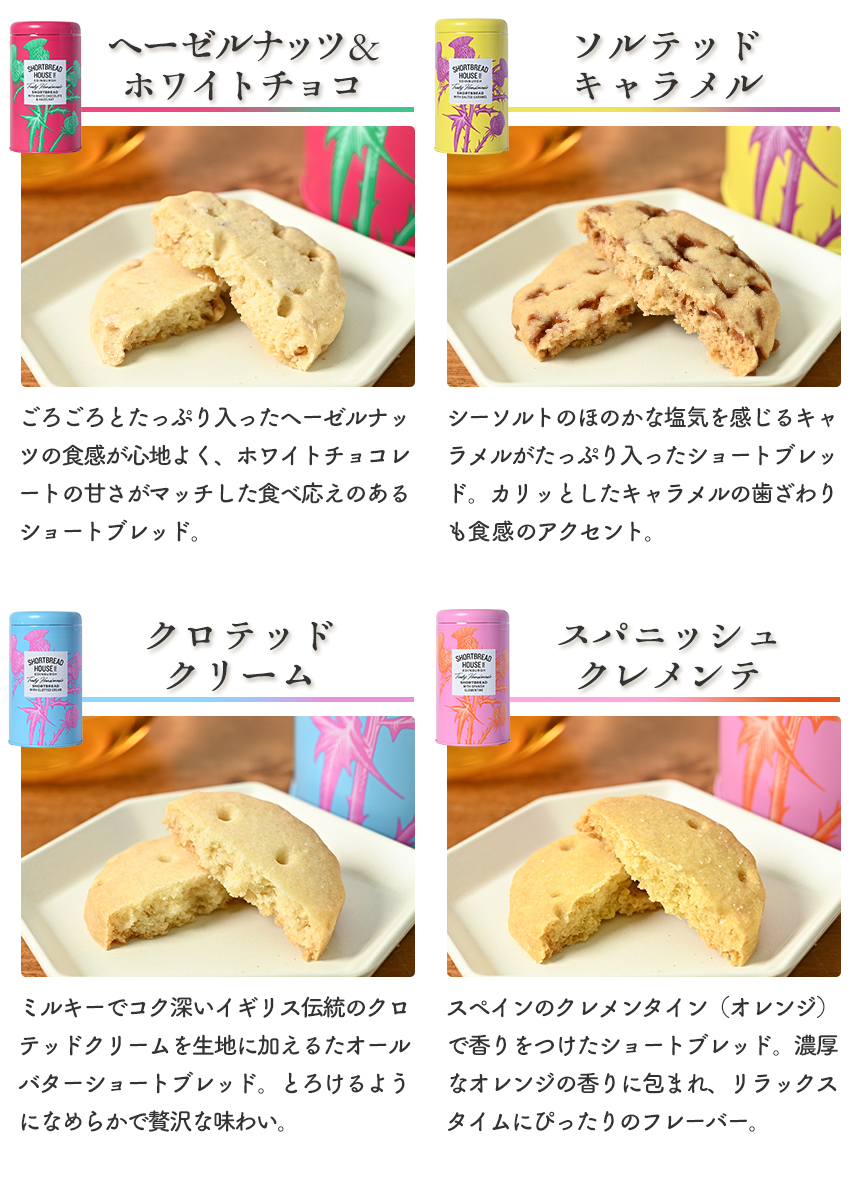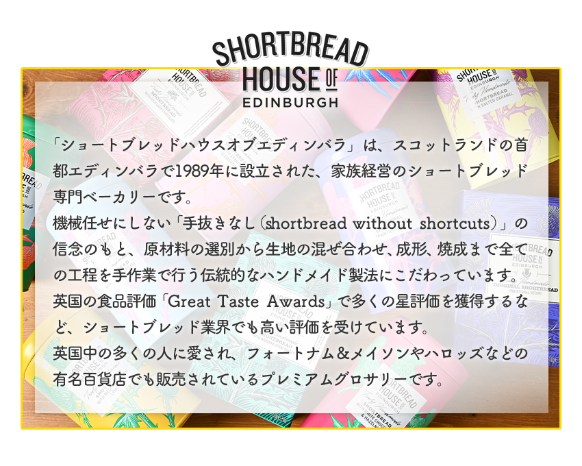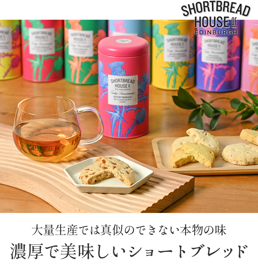 さっくりとした表面に、ほろりとほどける独特の食感、口に入れた瞬間に広がるバターのコクと口どけの良さ。シンプルだからこそ際立つ違いは、本場の味を求める英国菓子愛好家からも高く支持され、ハロッズなどの有名百貨店でも販売されています。