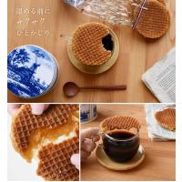 オランダの陶器、デルフト焼きをイメージしたブリキ缶。中身はオランダの伝統的なお菓子、ストループワッフルを詰め込みました。クリスピーワッフルにカラメルシロップをサンドし、バターと控えめなシナモンの風味が香る、贅沢な逸品です。クセになる濃厚なカラメルシロップの甘さが、ブラックコーヒーとよく合い、一枚で満足感が得られます。カップの上で5分ほど蒸すと中身のシロップがトロリと溶け出し、柔らかくなった生地とのハーモニーは絶品。もちろんそのまま頂いても、外はサクっと、中はしっとりと適度な歯ごたえを楽しめます。また、コーヒーや紅茶に浸したり、オーブンで温めて頂くのもおすすめで、一度味わえば、また無性に食べたくなる美味しさです。食べ終わった後のブリキ缶は小物入れとしてもお使い頂けます。 『バンケットブループ』 1930年から伝わる伝統的なレシピによって作られ、徹底した品質管理のもと製造しています。オランダ最大のベーカリーで、オランダの他、ドイツ、ベルギー、フランス、英国を中心に、40か国以上に輸出し、世界中で親しまれています。