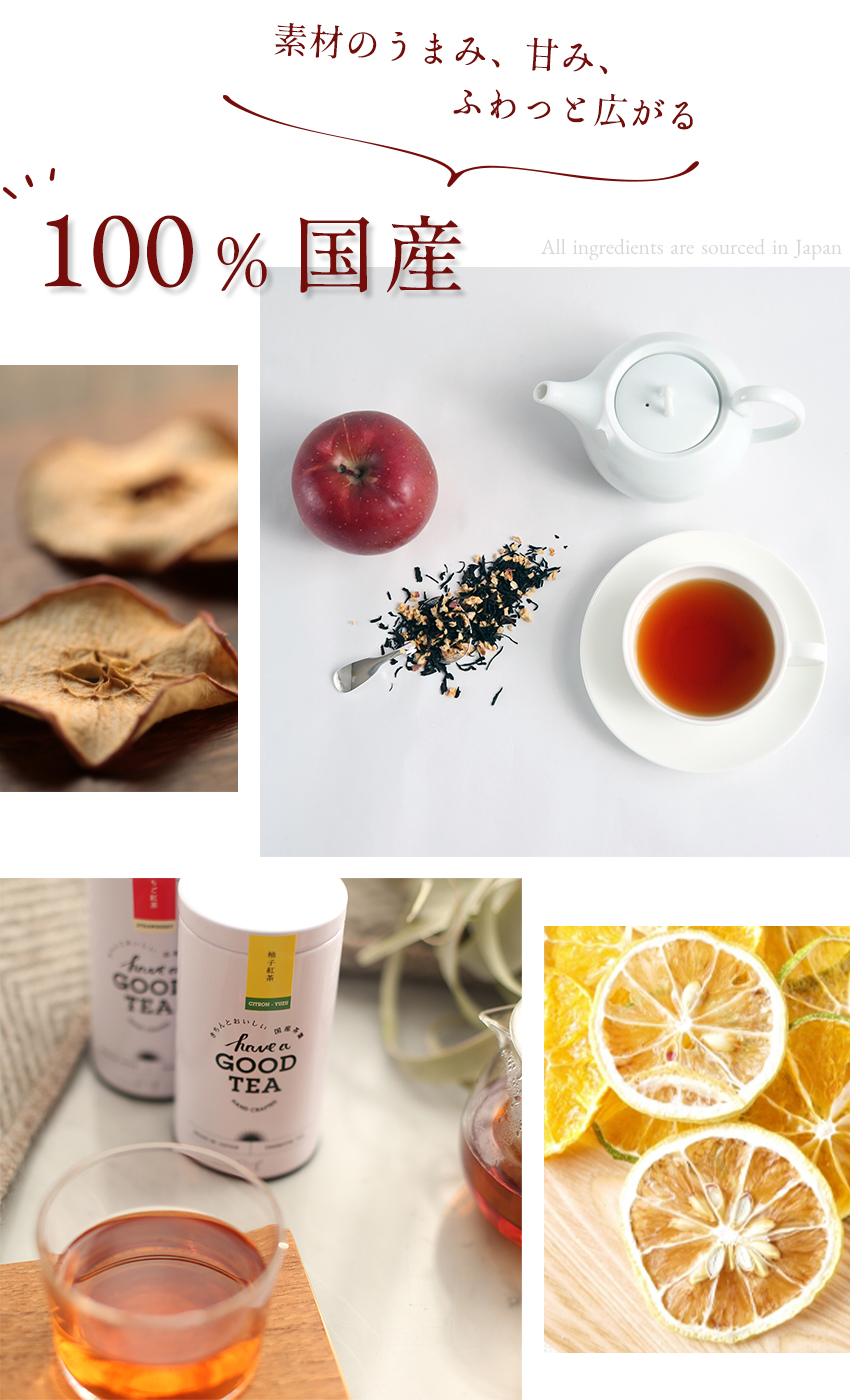 日本茶、抹茶の専門メーカー株式会社十吉が厳選した100%国産の和紅茶に、同じく100%国産のドライフルーツをミックスした「きちんとおいしい」和のフレーバーティー。