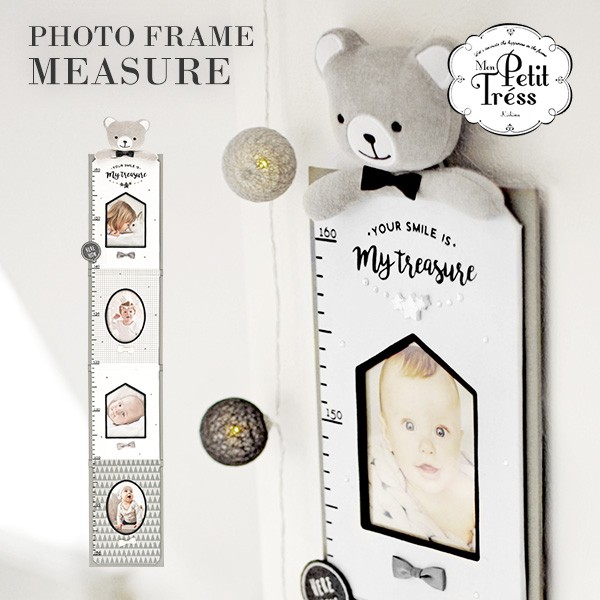 日々成長するお子さまの写真を一緒に飾れる、モノクロカラーのメジャーフォトフレーム。