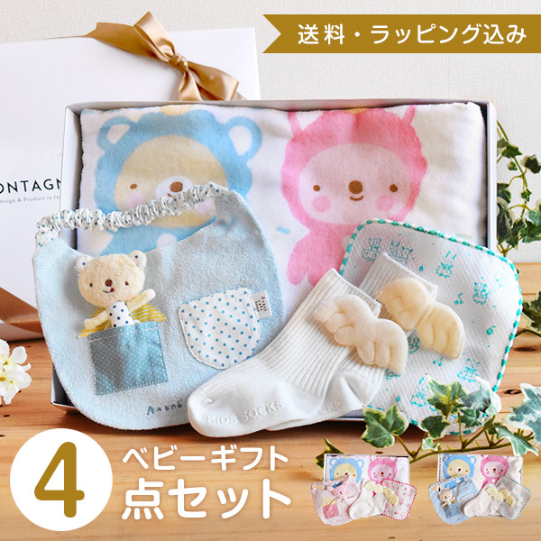 BOX入り オリジナルベビーギフトセット 4点セット 出産祝い 新生児 スタイ 身長計タオル くつ下 お口拭き 女の子 男の子 赤ちゃん プレゼント KB334-BX-