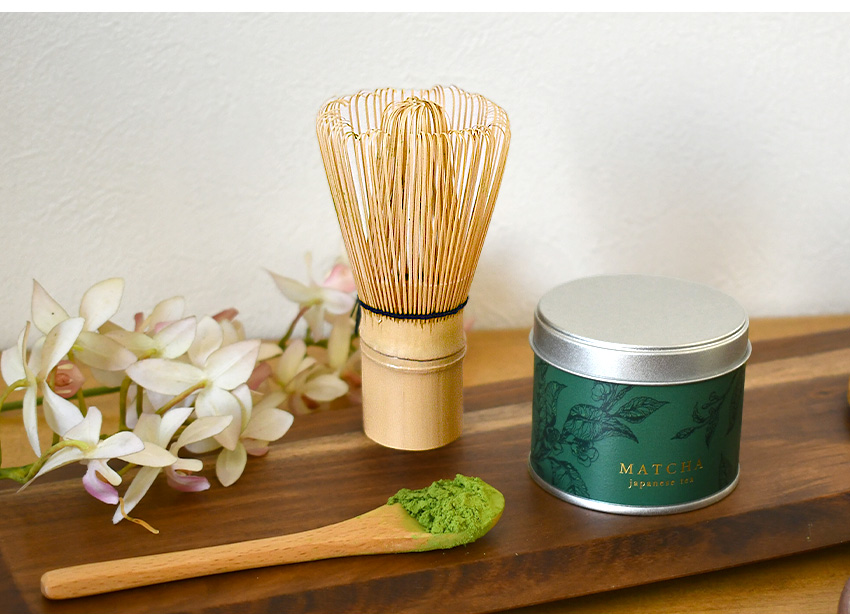 抹茶(粉末)とこの茶筅があれば、ご自宅でも手軽に抹茶を点てられます。茶筅がなくても抹茶をかき混ぜることは出来ますが、美味しい抹茶を飲みたいなら茶筅がおすすめ。