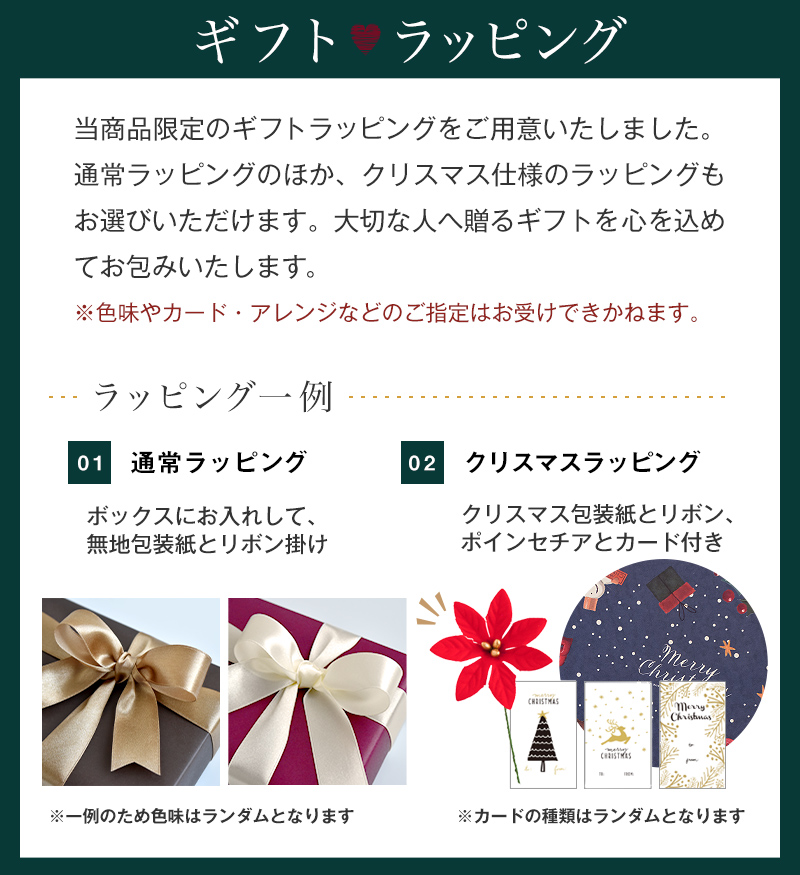 ラッピングご利用時は一律で、納品書や広告類の同梱はしておりません。
