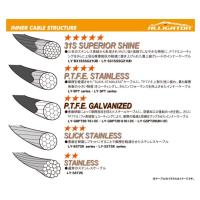 ※「SLICK GALVANIZED」ケーブル : 防錆の亜鉛めっきを施したスチールケーブルで、表面を研磨加工しフラットにすることで摩擦を軽減したインナーケーブル