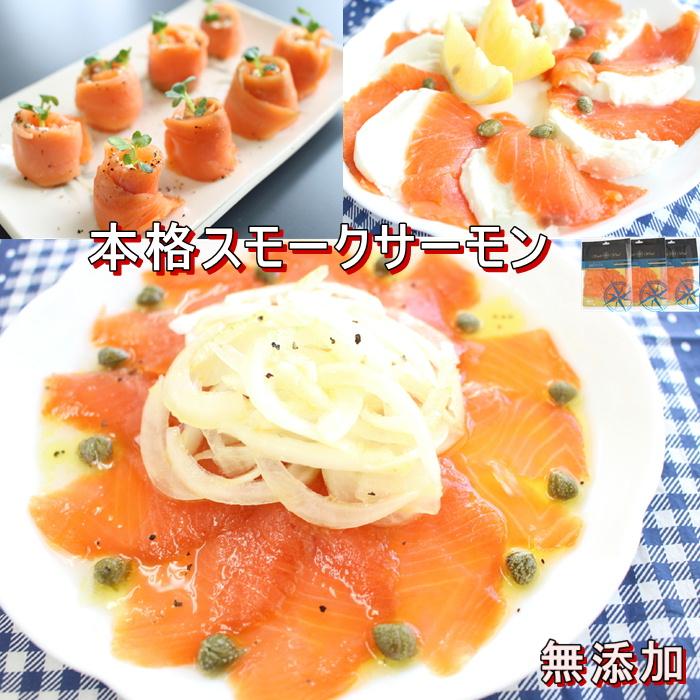 | 添加物は一切使用せず、水揚げ地でしか味わえない(養殖場産地と工場が近いため燻製前に原料を凍結してません)サーモン本来の新鮮な食感を楽しめます |