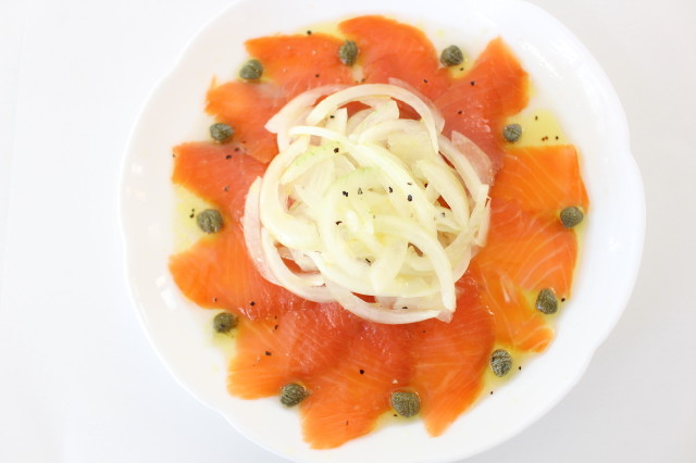 | スモークサーモンのマリネ(ケーパーを添えて) |