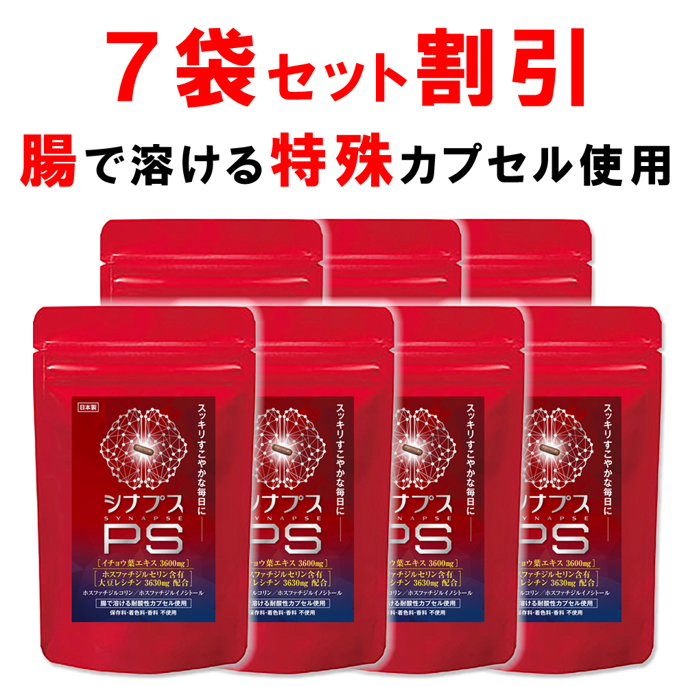 【7個おまとめ割引】 【管理栄養士推奨】 ホスファチジルセリン サプリ PS イチョウ葉 1日120mg シナプスPS 子供 大人 集中力 記憶力 遺伝子組換え不使用