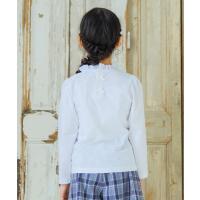 むーのんのん 子供服 女の子 ブラウス 春夏 長袖 フォーマル 結婚式 発表会 普段着 通学着 綿100% 後ろボタン シフォン フリル ハイネック ホワイト MOONONNON