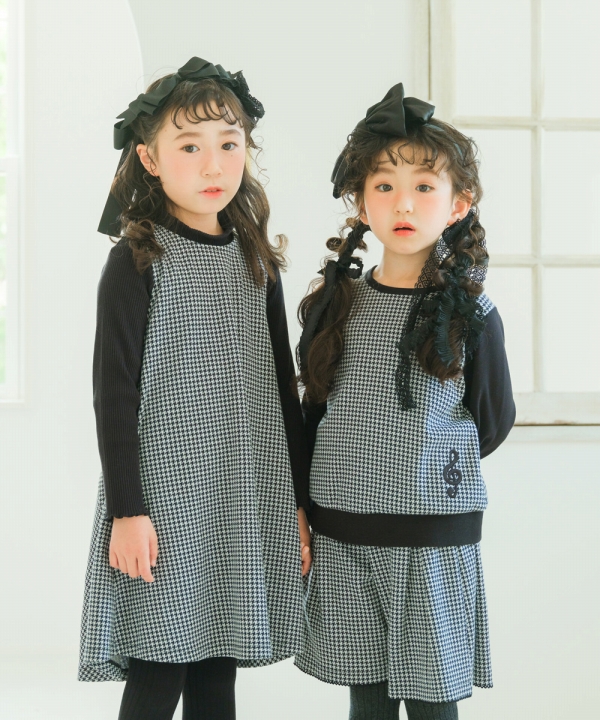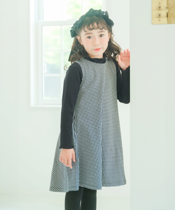 むーのんのん 子供服 女の子 ワンピース ジャンパースカート 秋冬 ノースリーブ 子ども服 セミフォーマル ピアノ 発表会 ベビー キッズ 千鳥格子 moononnon