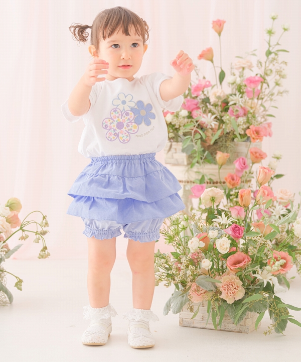 むーのんのん 子供服 女の子 パンツ 夏服 ショートパンツ 子ども服 こども服 ベビー 赤ちゃん ウエストゴム フリル チコパンツ ブルマ かぼちゃパンツ moononnon