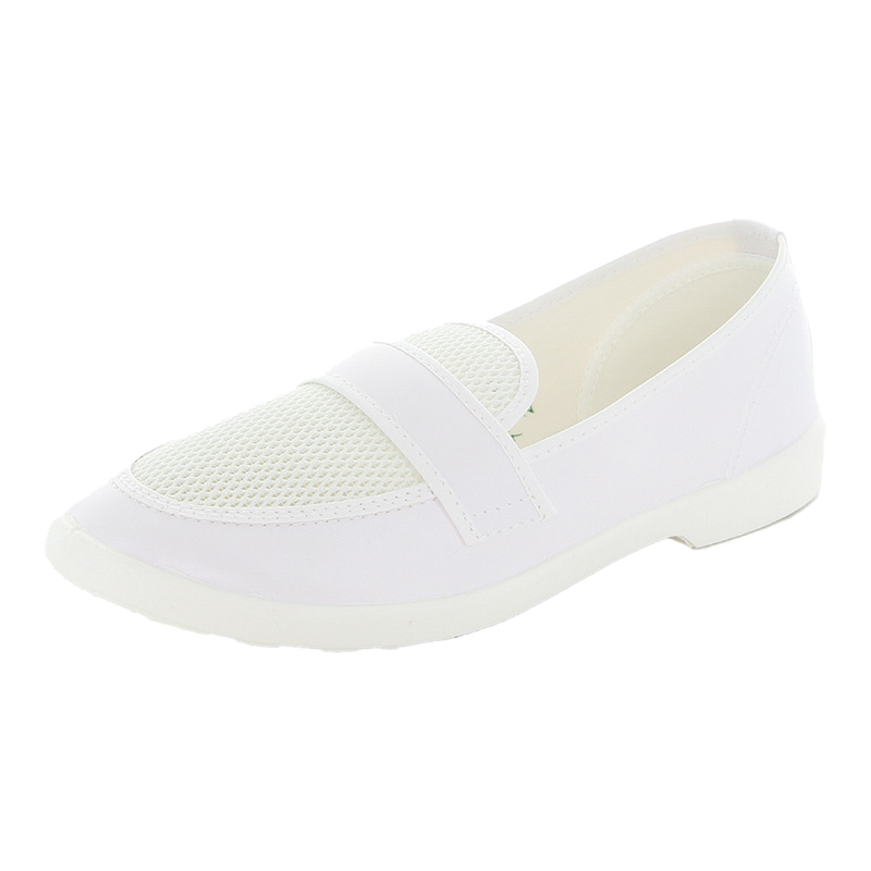 クリーンルームでの無塵作業に対応した静電気防止仕様のシューズです。アッパーにはメッシュと合成皮革を使用し、通気性に優れいるため高温多湿での作業にも最適です。 クラス1000以上のクリーンルームで使用可。(ウィズ:2E) (素材:アッパー) 合繊/合成皮革 (底材) 導電性ポリ塩化ビニル (原産地) JAPAN (重量)片足約230g(25.5cm時) (検索用キーワード) メンズ/レディース、ホワイト、21.5cm 22.0cm 22.5cm 23.0cm 23.5cm 24.0cm 24.5cm 25.0cm 25.5cm 26.0cm 26.5cm 27.0cm 28.0cm 29.0cm 30.0cm