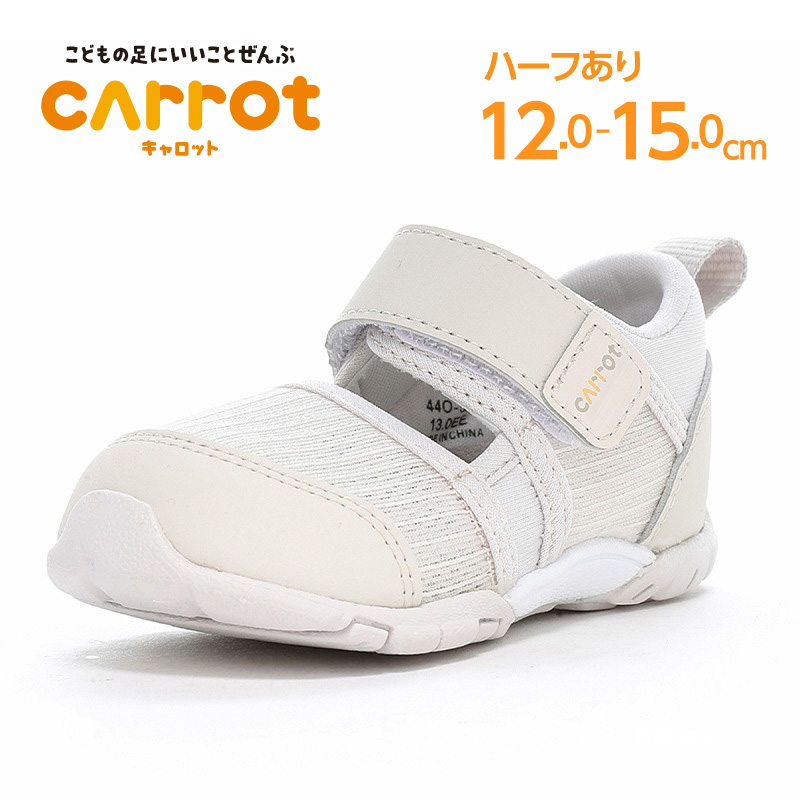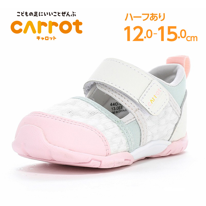 「こどもの足にいいことぜんぶ」の想いから生まれた「キャロット」Hi!!シリーズのベビーサマーシューズ。子どもの足を守る爪先を覆ったデザイン。足に優しい機能に加え、急速乾燥の機能も備えた、お出かけからレジャーまで活用いただける一足。独自開発の下記「4つの機能」とハードシャンクが足の健やかな成長を促します。【つま先ゆったり】つま先にゆとりを持たせ、足指を圧迫せずにのびのび動かせます。【機能性カップインソール】取り出して洗濯でき、靴内を清潔に保てます。つま先部分に反発性能と衝撃吸収性能を兼ね備えた高反発スポンジを採用。足指の動きを促します。中敷きの屈曲部をより曲がりやすいように設計。踵部分に硬質EVAパーツを採用し、安定性を高めました。【カウンターボックス】子どもの柔らかく歪みやすい足を箱型構造でしっかり支えます。【フレックスジョイント】足と同じ位置で靴が曲がり、足の負担を軽減。【ハードシャンク】足のアーチを支える芯材(シャンク)を土踏まずから踵部に設置。蹴り出しの際、常に適正な屈曲を確保し歩行時の負担を軽減。【カテキン】天然緑茶が原料のカテキンを使用し、優れた抗菌防臭効果を発揮。