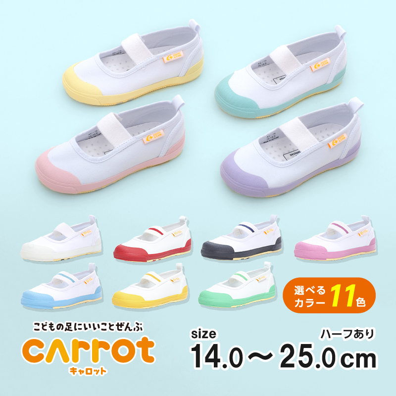 | 【公式限定】 ムーンスター キャロット CR ST11(幅広3E) 上履き・バンドタイプ | ムーンスター キャロット CR ST12(2E) 上履き・スリッポンタイプ |