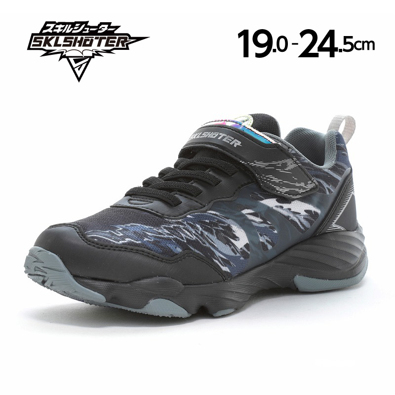 男の子の様々な潜在能力を解き放つ「スキルシューター」の「風スキル シップウ」です。「スキルを解き放て」をコンセプトに子どもたちの多様化するシーンに合わせた「SKL」をアウトソールに搭載しており、踏み込む際の荷重によって「SKL」が発動します。「風スキル」は風をモチーフにしたスパイク形状の「SKL」が走る際に発動し、走りをアシストします。脱ぎ履きしやすいゴム紐×バンドタイプです。サイドの激しい竜巻グラフィックがポイントのスピード感あふれる商品です。重さは21.0cmで片足約165gです。