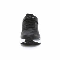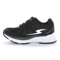 脱ぎ履きしやすいゴム紐×バンドタイプ。動きの横ブレをサポートする多層的なアッパー構成が特徴の一足です。