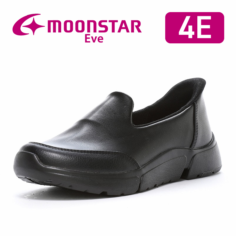 アクティブなミセスの足元をサポートする「ムーンスター イブ」のコンフォートシューズです。脱ぎ履きらくらくな「らくにすぽっと履ける靴」シリーズです。シンプルなスリッポンタイプで普段履きにもちょっとしたお出かけにも使いやすい一足です。軽量性にも優れています。